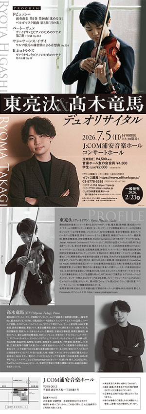 全席指定 一般¥4,500 音楽ホール友の会会員¥4,300